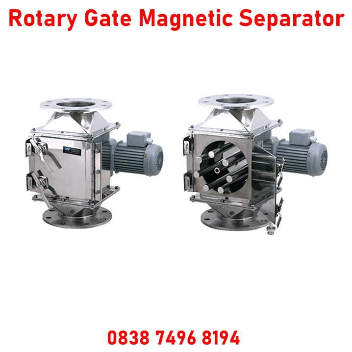 Kami CV Gauss Magnet Indonesia (GMI) menjual beberapa model magnet trap salah satunya seperti pada produk di gambar. Rotary grate magnetic separator banyak digunakan untuk produk berupa bubuk (powder) yang banyak digunakan untuk industri Makanan, minuman, kosmetik, farmasi, plastik, karet dan pakan ternak, magnet separator berfungsi untuk menangkap kontaminan metal yang ada pada line produksi. Kami menyediakan magnet separator dengan sesuai kebutuhan anda (custom).